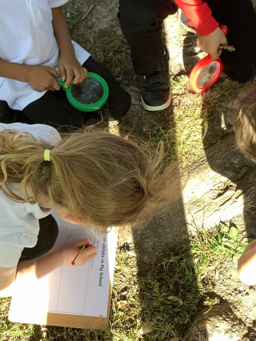 In Science this week, pupils in Goldsworthy class have been exploring habitats and micro habitats around the school.