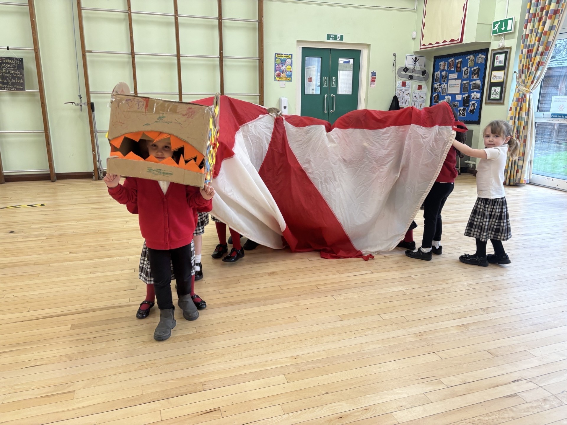 The children had great fun working together to make a dragon which they danced around the hall.